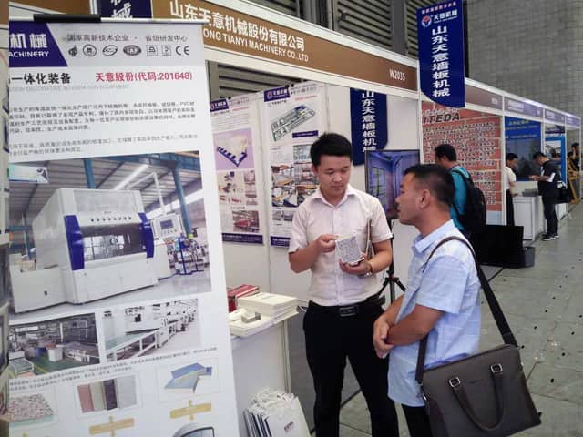 本次展覽會現(xiàn)場人頭攢動,氣氛十分熱烈,天意機械展位也是人氣火爆,前來咨詢鋼結(jié)構(gòu)集成房屋、外墻保溫裝飾一體化板生產(chǎn)線,輕質(zhì)墻板生產(chǎn)線、復(fù)合墻板生產(chǎn)線等產(chǎn)品的客戶絡(luò)繹不絕。銷售部李經(jīng)理,熱情的向來訪的每位客戶,介紹了天意綠色建材裝備在鋼結(jié)構(gòu)建筑、裝配式建產(chǎn)業(yè)化中的應(yīng)用優(yōu)勢。